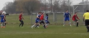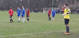 Dann ein „Blackout“ unseres Routiniers auf der rechten Außenverteidigerposition, Daniel Düvel. Er wollte den Ball in einer eigentlich völlig harmlosen Situation ins Seitenaus rollen lassen, hatte aber nicht mit dem Vehlager Goalgetter Sergej Lauer gerechnet. Dieser schnappte sich den Ball und lupfte ihn über Pawel Zapala hinweg ins Tor zum überraschenden Ausgleich. Das war schon ein Traumtor, wenn man es mit den Gastgebern hielt. Eigentlich hatten die Vehlager überhaupt keine richtige Chance, aber es stand 1:1.