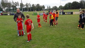 Das geplante F-Junioren-Turnier musste ausfallen. Dafür gab es spannende Spiele bei den Kleinsten, den G-Junioren. Hier siegten die „Minis“ vom SV Weser Leteln. Tonnenheides jüngste Kicker mit ihren Betreuern Rico Wischmeyer und Niki Kleinert belegten von acht Teams den vierten Platz. Bei den E-Junioren gewann die FSG Hüllhorst-Tengern das Finale gegen den Vorjahressieger TV Bohmte 01 mit 3:2 und holte sich den großen Wanderpokal. Die Eintracht belegte von vier Teams den vierten Platz.