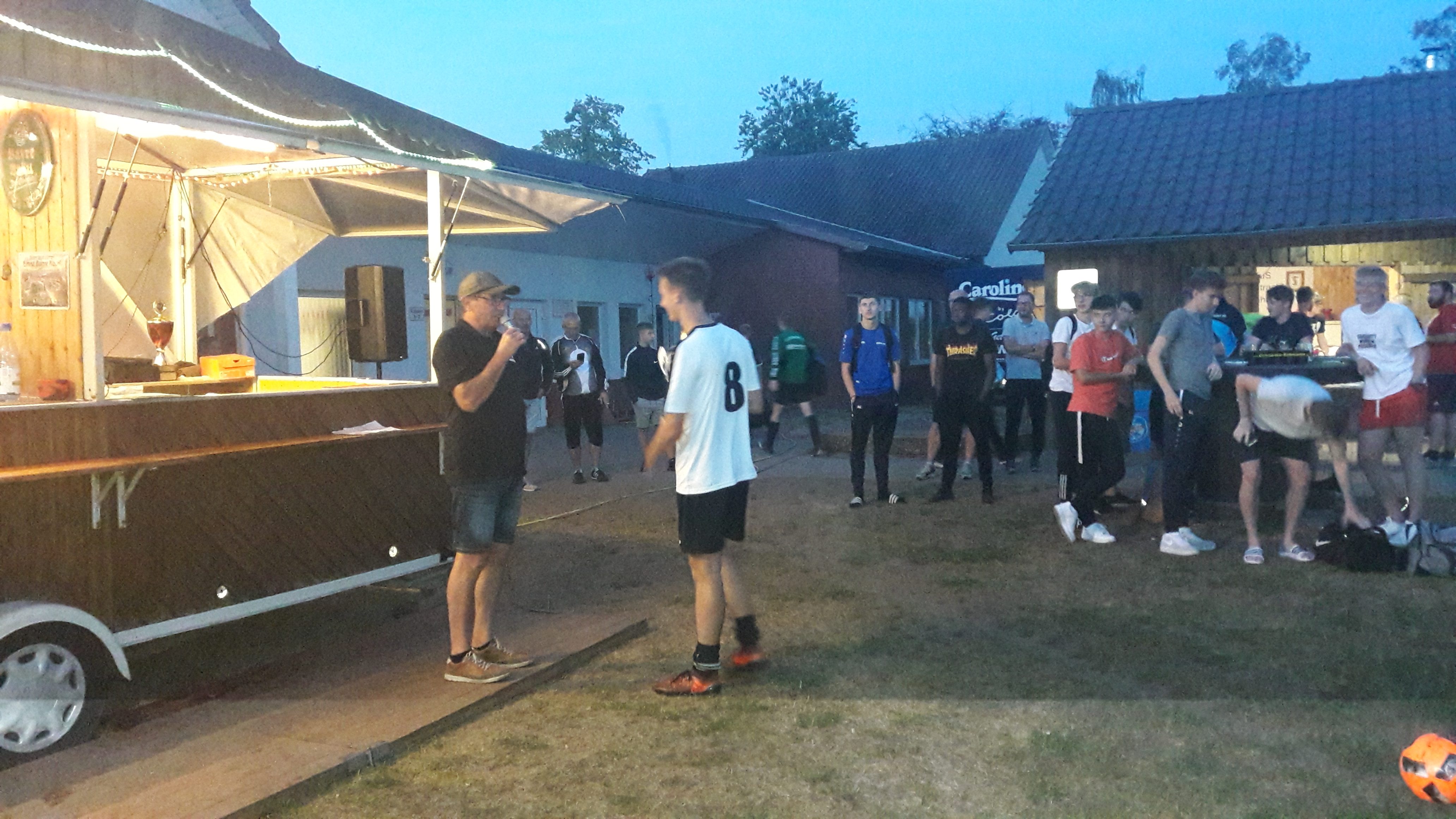 20180817_211216 22. August 2018 • 4128 × 2322 • Rückblick auf den 2. Teil des Sportfestes Turnierleiter Günter Marschall überreicht den Siegerpokal der A-Junioren an den Spielführer der JSG Rahden.