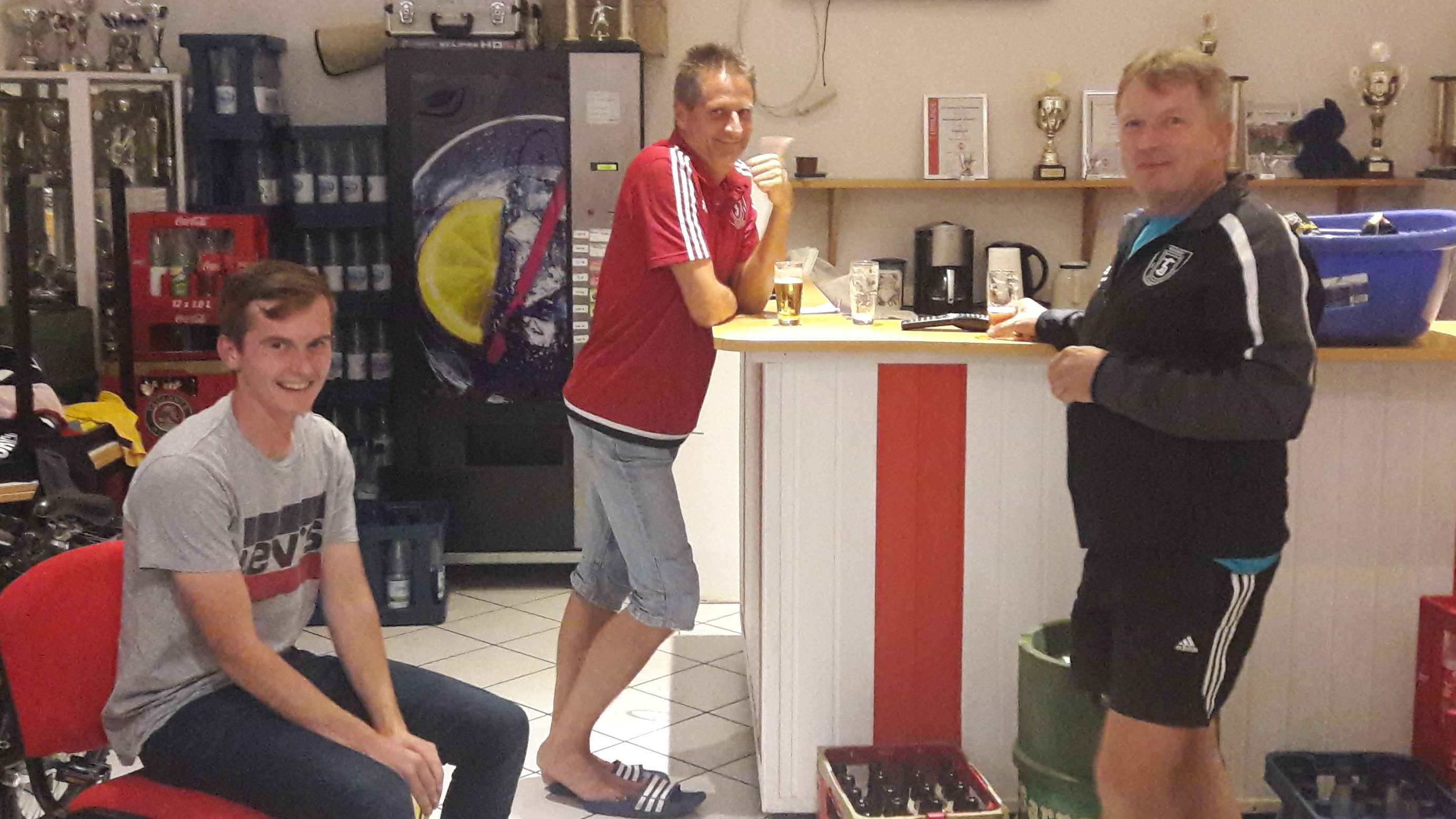 20180817_212844 22. August 2018 • 2766 × 1556 • Rückblick auf den 2. Teil des Sportfestes David Jackson, Jörg Uphoff und Uwe Wiehe nach Beendigung des A-Juniorenturniers.