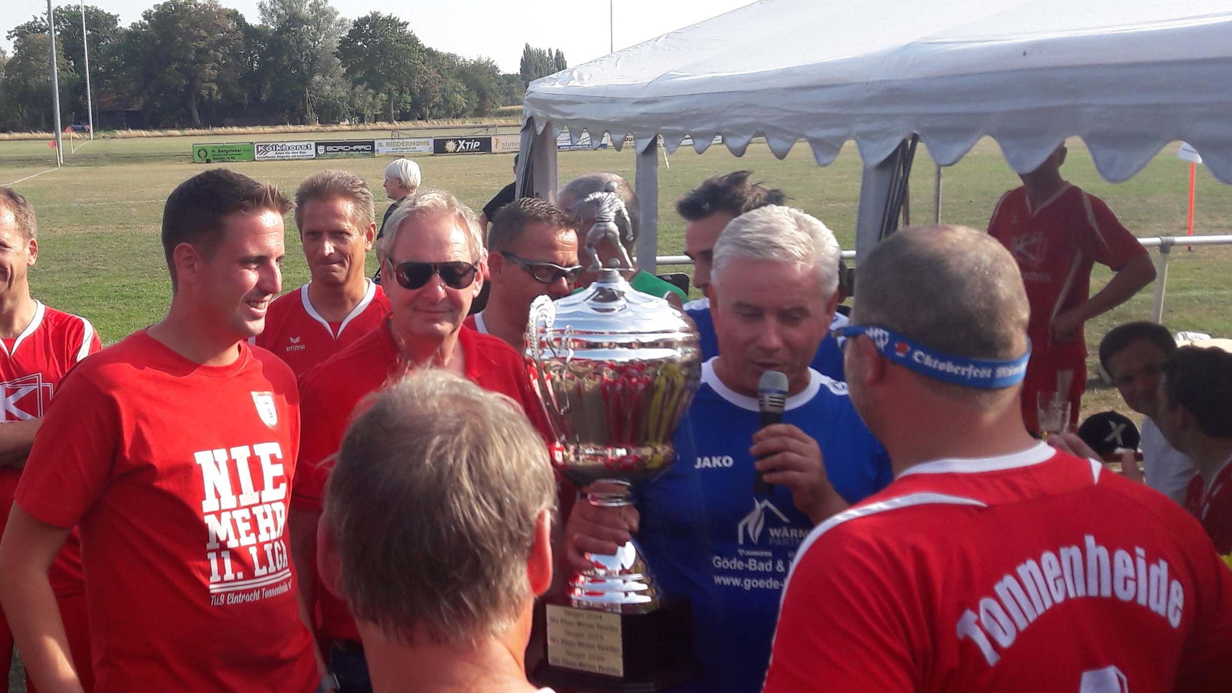 Hendrik Heinz vom Spargelhof Winkelmann übergab den Cup. Ein Fass Bier gab es dazu von Ernst-August Winkelmann.