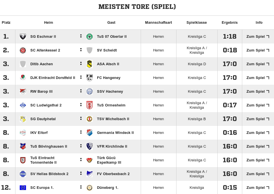 In ganz Deutschland haben in der 13. KW nur 7 Mannschaften mehr Tore geschossen als unsere Zweite Herren. 2 Tore fehlen noch bis die 100 Tore Marke geknackt ist. Dies sollte beim nächsten Spiel (20. Spieltag) gelingen.