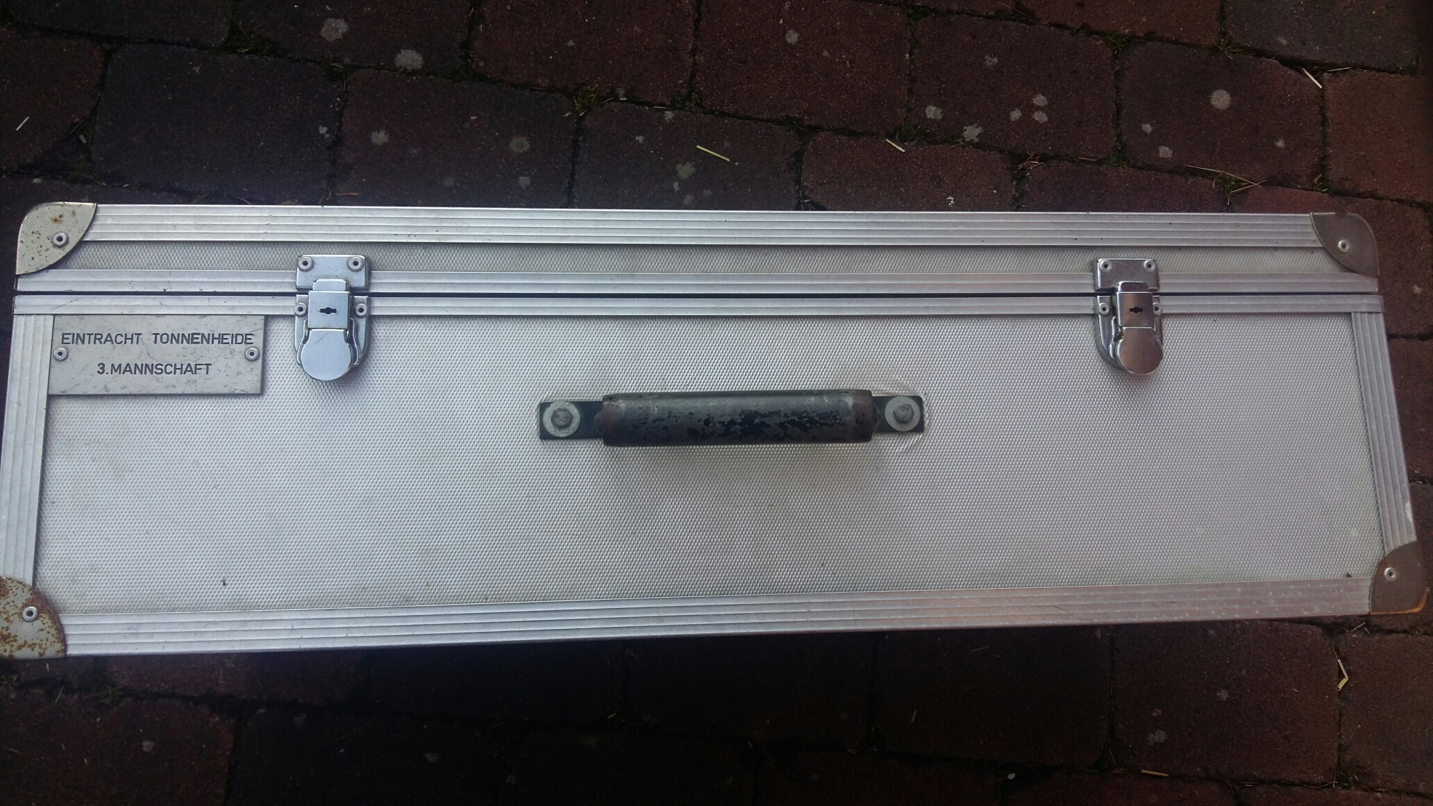 Seit längerem habe ich den auf den Fotos abgebildeten Trikotkoffer bei mir stehen. Er gehörte mal der 3. Mannschaft.