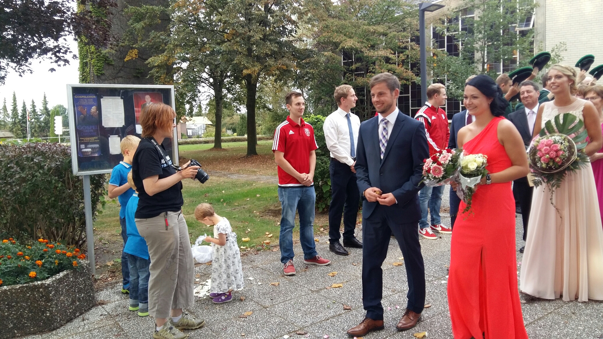 Jetzt ist es schon wieder eine Woche her, die Zeit vergeht wie im Fluge: Patrick Dökel und seine Braut Jenny Rüter schlossen den Bund fürs Leben! Um dem Spieler unserer „Ersten“ und der aktiven Badmintonspielerin zur Hochzeit zu gratulieren, ließen es sich die Sportler natürlich nicht entgehen, nach der kirchlichen Trauung vor der Tonnenheider Christuskirche Spalier zu stehen.