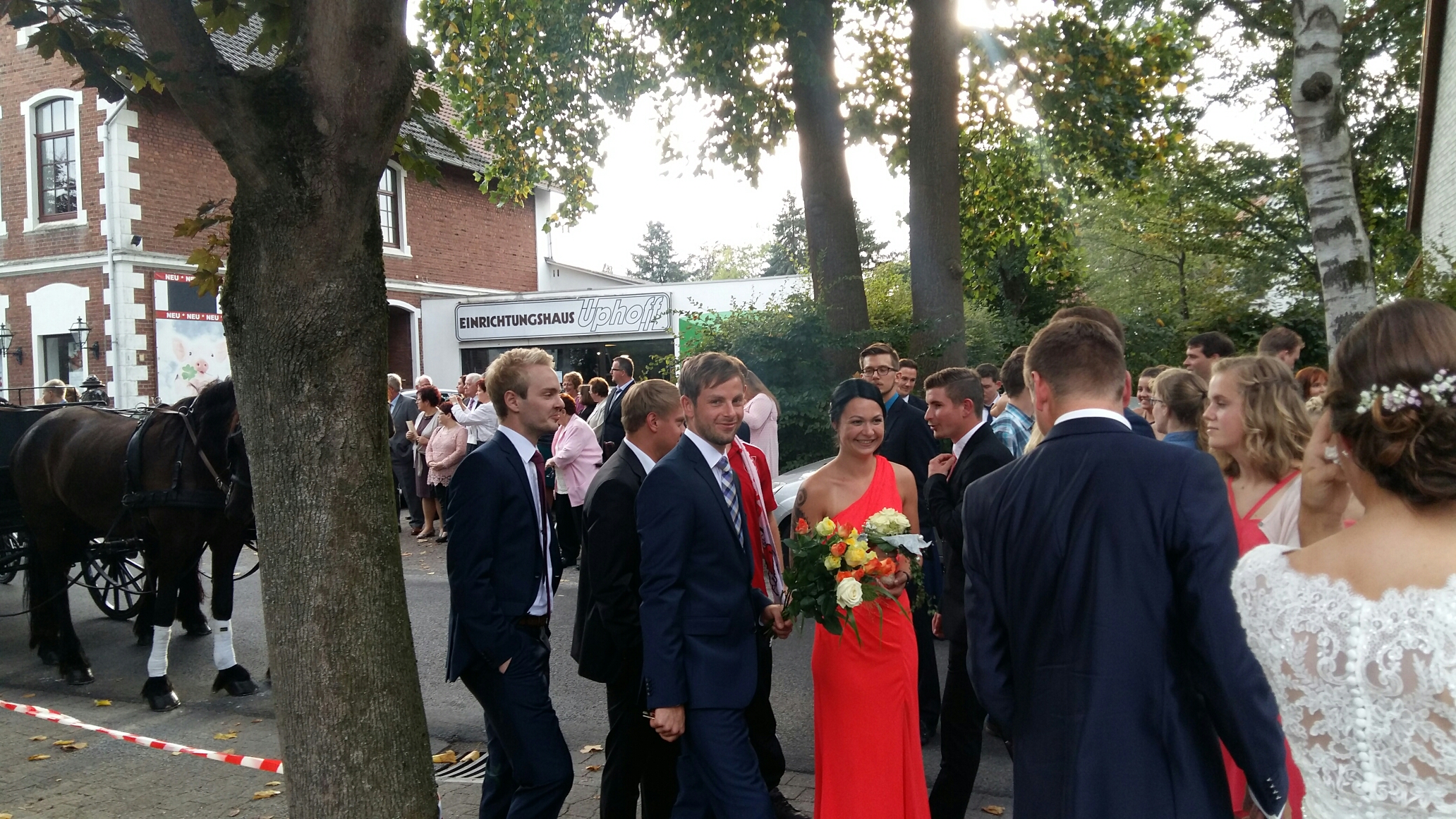 Da Jenny’s weitere sportliche Leidenschaft der Reitsport ist,  wurde das Paar standesgemäß mit einer zweispännigen Kutsche und einer Eskorte aus Reitern des Reitvereins Steinbrink zum Feierlokal, dem Krug zum grünen Kranze, begleitet. Nicht ohne einige Stopps durch das obligatorische „Schatten“. Die Eintracht gratuliert nochmals herzlich und wünscht den Eheleuten alles erdenklich Gute!