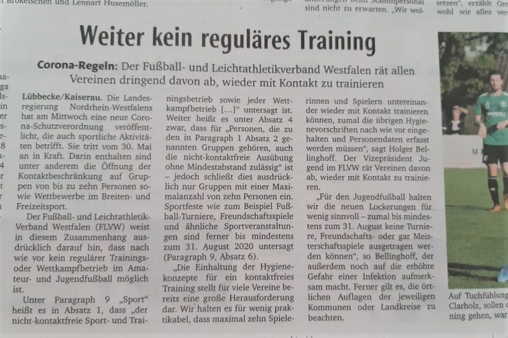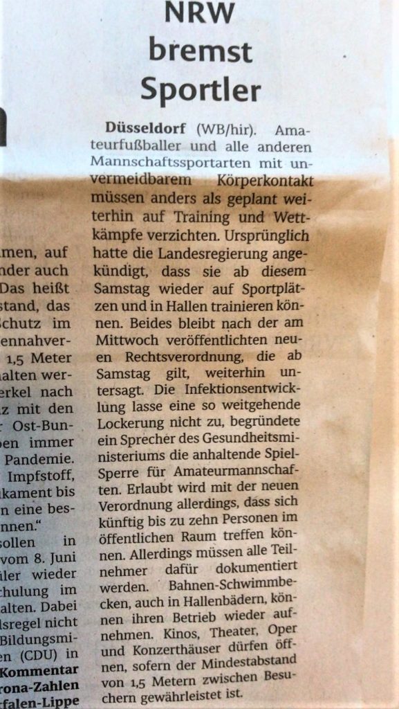 Viel mehr, als in den beigefügten Presseveröffentlichungen der Landesregierung NRW sowie des Fußball- und Leichtathletikverbandes Westfalen im Laufe der Woche vor Pfingsten zu entnehmen war, können auch die Eintracht-Verantwortlichen nicht zum Thema „Lockerung der Corona-Schutzmaßnahmen“ sagen. Hier zu lesen: