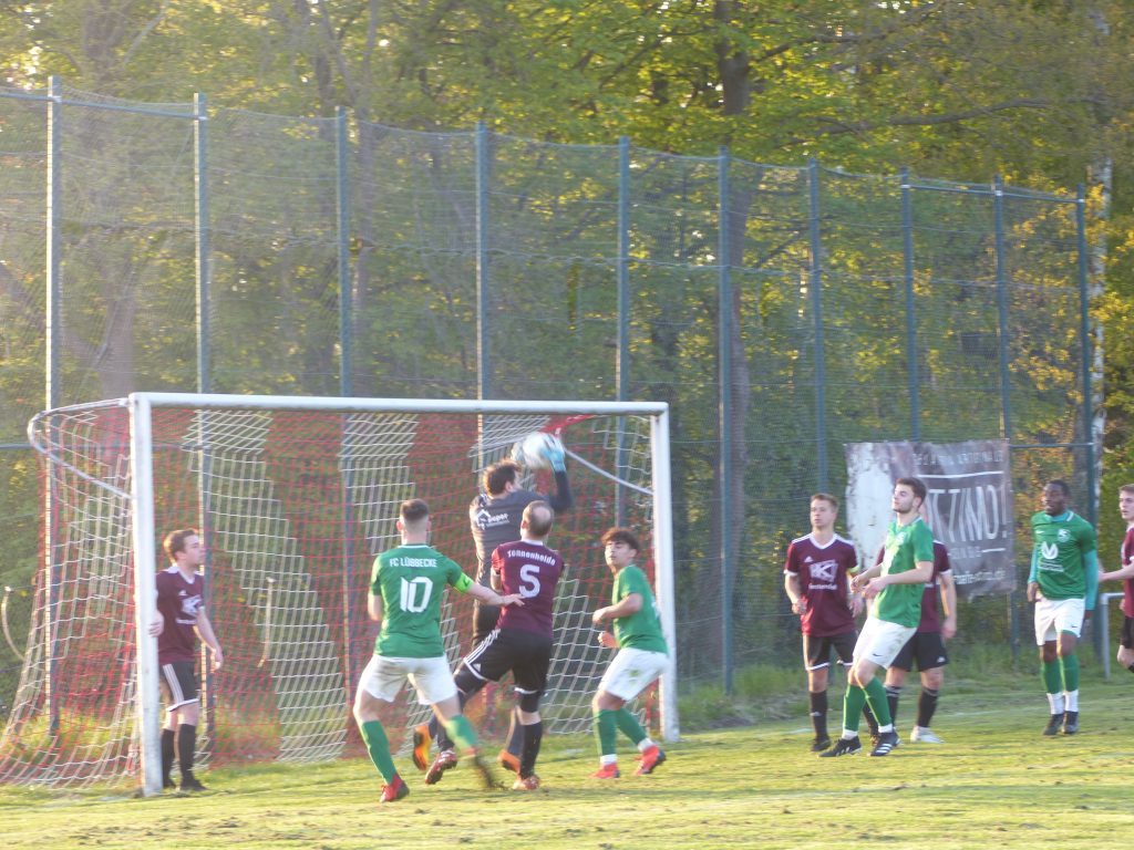 Und wer weiß, ob die Gäste dann noch herangekommen wären. So dauerte es bis zur 79. Minute, als der FCL zum Anschlusstreffer kam. Jetzt gab es bange Augenblicke für die Heimmannschaft zu überstehen. Auch die Lübbecker forderten nach vermeintlichem Foulspiel im Tonnenheider Strafraum einen Strafstoß und der wäre vermutlich auch keine Fehlentscheidung gewesen.