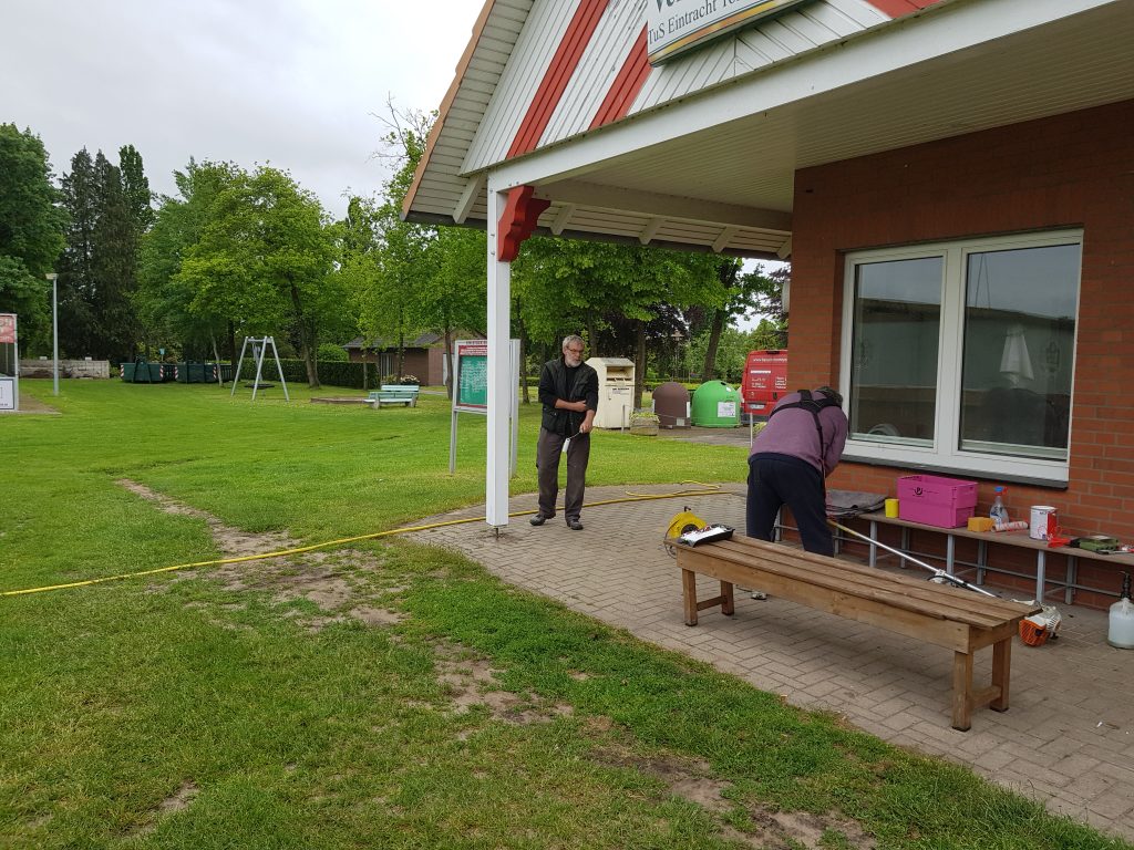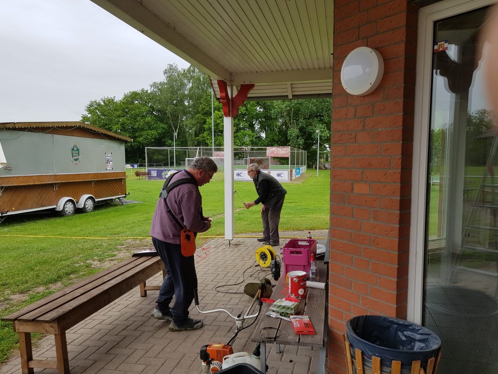 Herbert Henke als Chef des Sportplatzteams hatte im Hinblick auf das diesjährige Sportfest im Juni zu einem Arbeitseinsatz gebeten. Und bis auf Friedhelm Bergsieker (beruflich verhindert) und Sigi Schwarze (verhindert) waren alle erschienen: neben Herbert Hans Werner Tegeler, Gerhard Drapart, Reinhard Bohnhorst, Günter Helmich, Rudolf Stickan und Wolfgang Bergsieker.