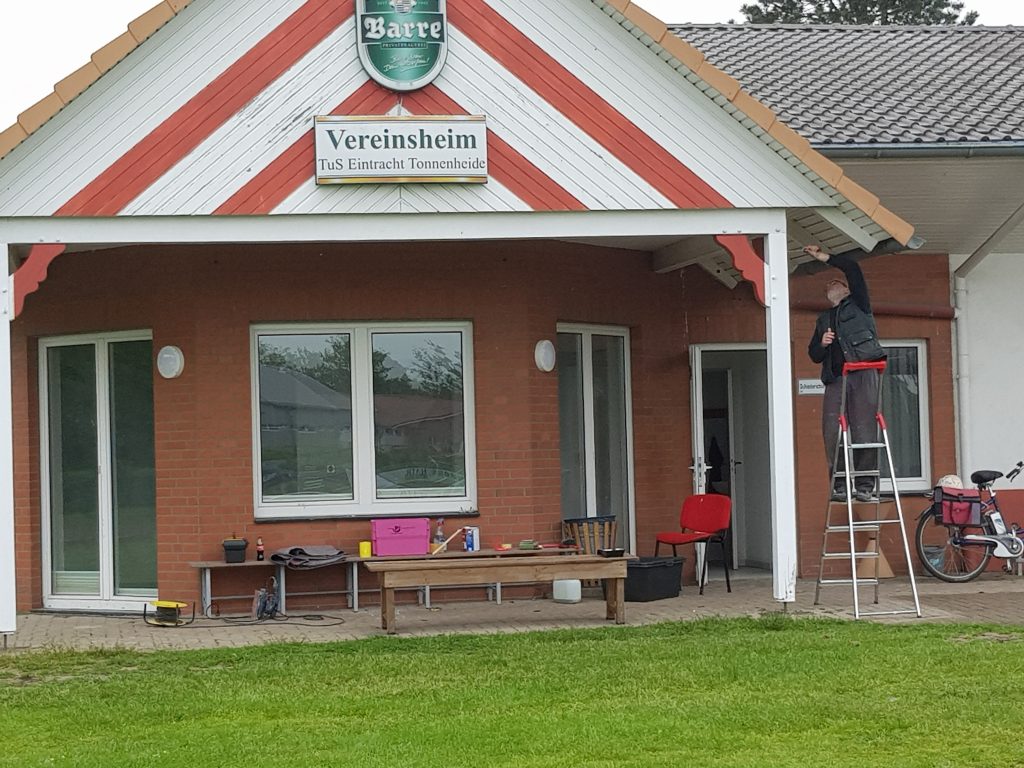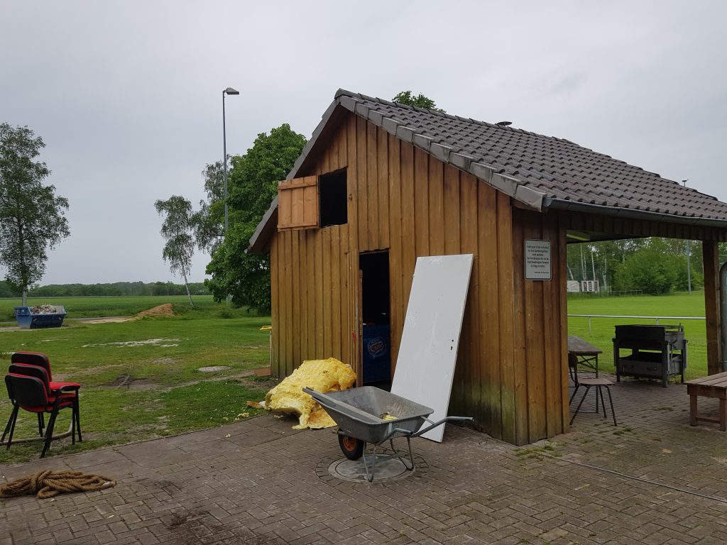 In erster Linie wurden die Werbebanden gesäubert. Aber auch an anderen Stationen gab es was zu tun: Rasenkanten schneiden, Pflastersteine rund um den Benesch-Court reinigen, Rasen mähen und Ausräumen des Dachbodens der Grillhütte. Diese wird im Zuge des Umbaus des Vereinsheims demnächst abgerissen. Es wurde aber auch was gestrichen, nämlich die Balken des Überstandes vor dem Vereinsheim. Hier einige Fotos von den Arbeiten: