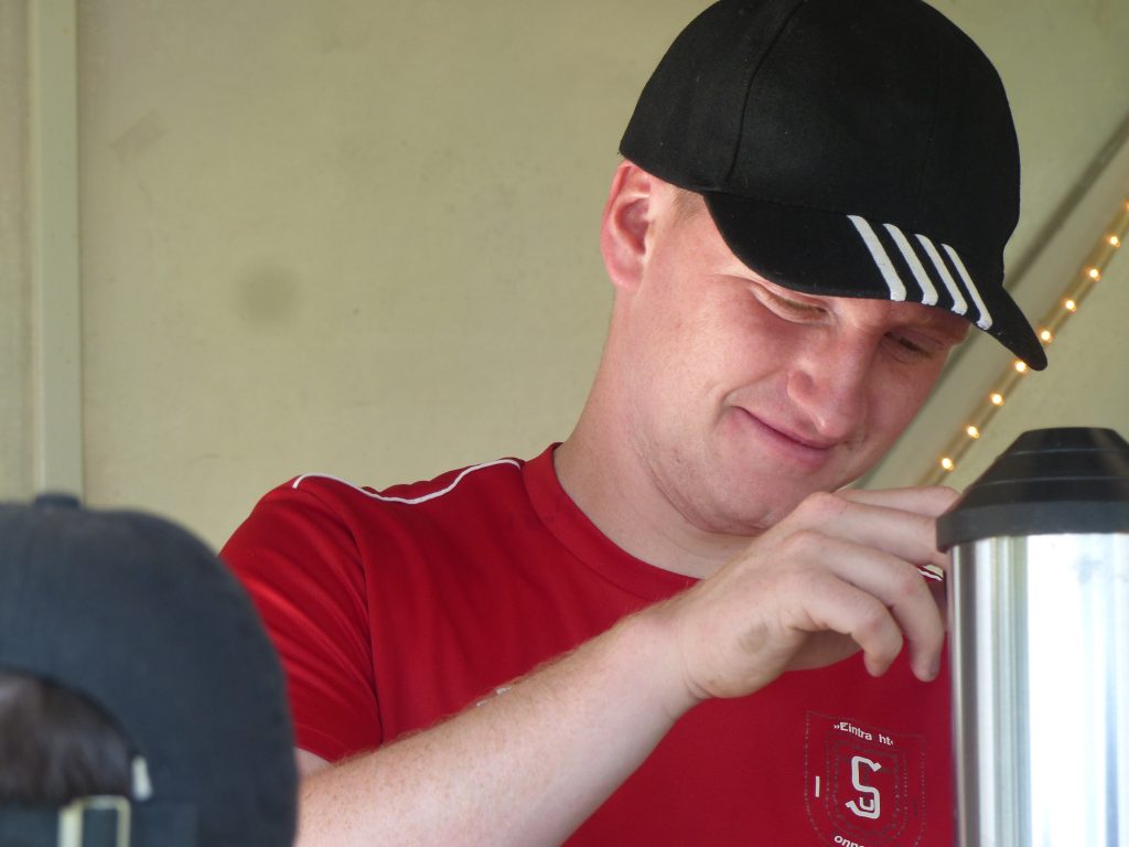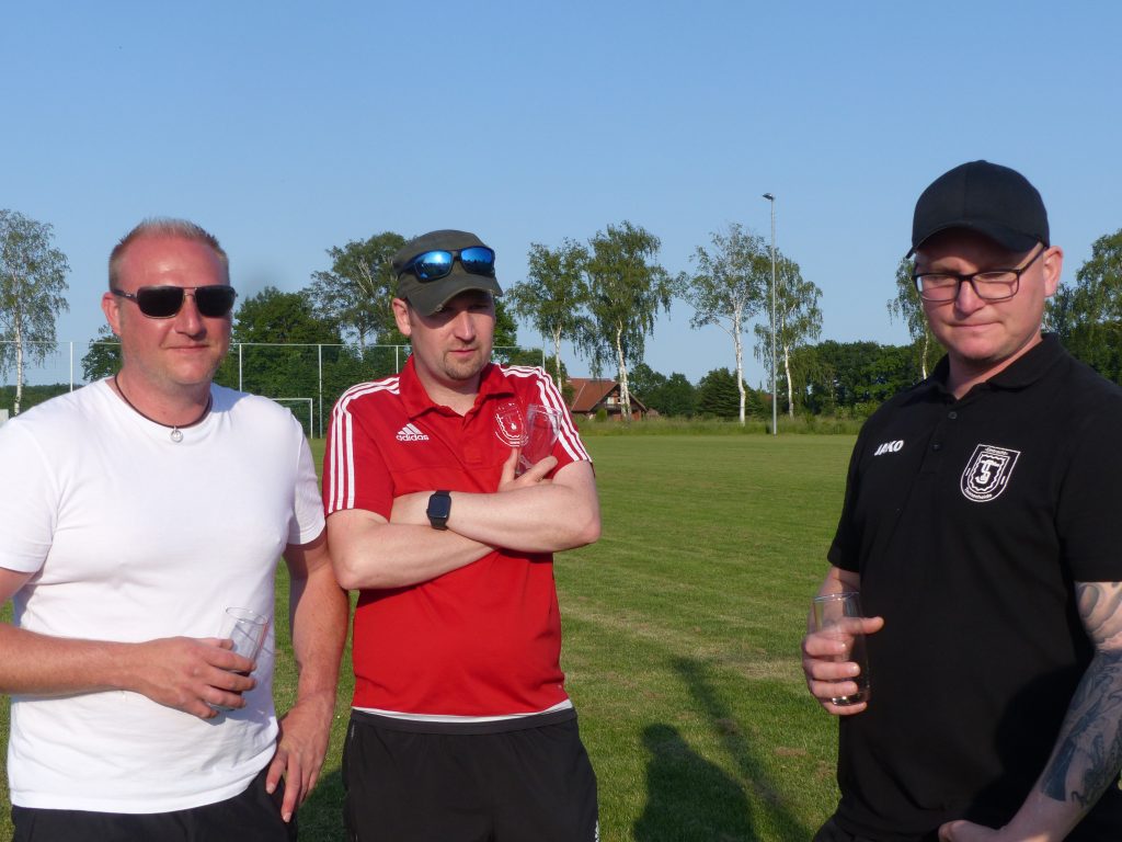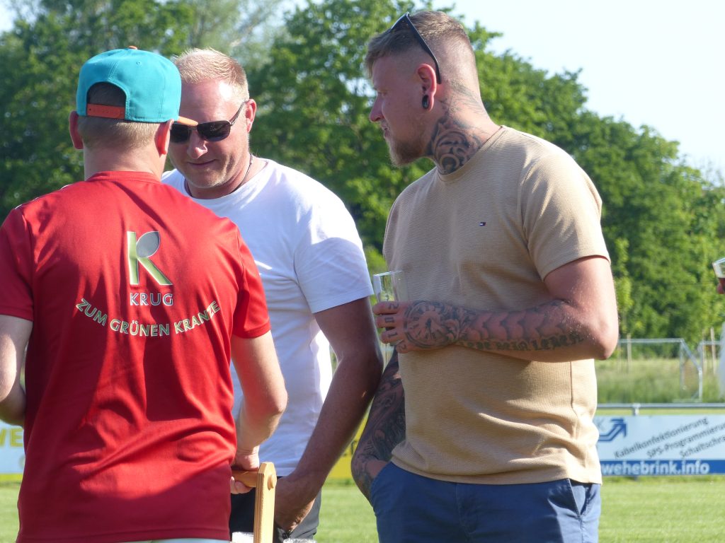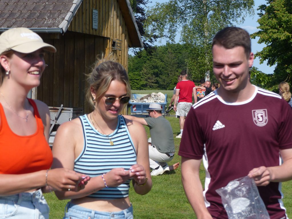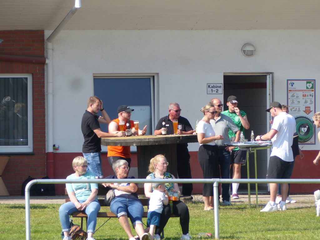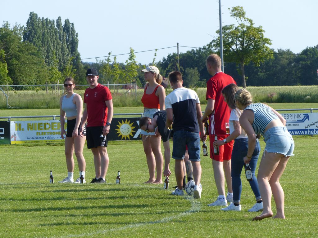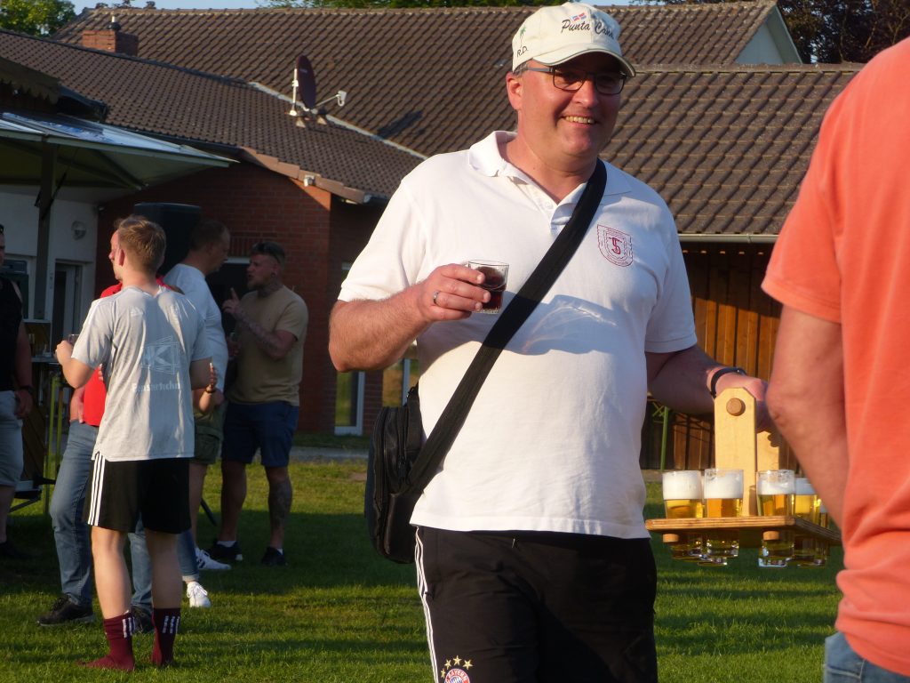 Jonas Friedrich als „Lautsprecher“.Niki Kleinert am Zapfhahn.Eben noch auf dem Platz, jetzt schon hinter der Theke. „Tyronne“.„Bierpong“???nochmal Bierpong….Monia mit cooler Sonnenbrille war die meistfotografierte Person, hier ein Beispielfoto.Trainer Torsten und Betreuer Dennis, links Markus.Die Fans feiern mit den Mannschaften.Diese Treuen – im Vordergrund – auch, aber etwas sinniger.Die Saison ist geschaftt! Unser Sozialwart und Altliga-Mitglied Tommi Rosenbohm geniesst ein Kaltgetränk.„TuS Eintracht, TuS Eintracht, TuS Eintraaaacht!!!“