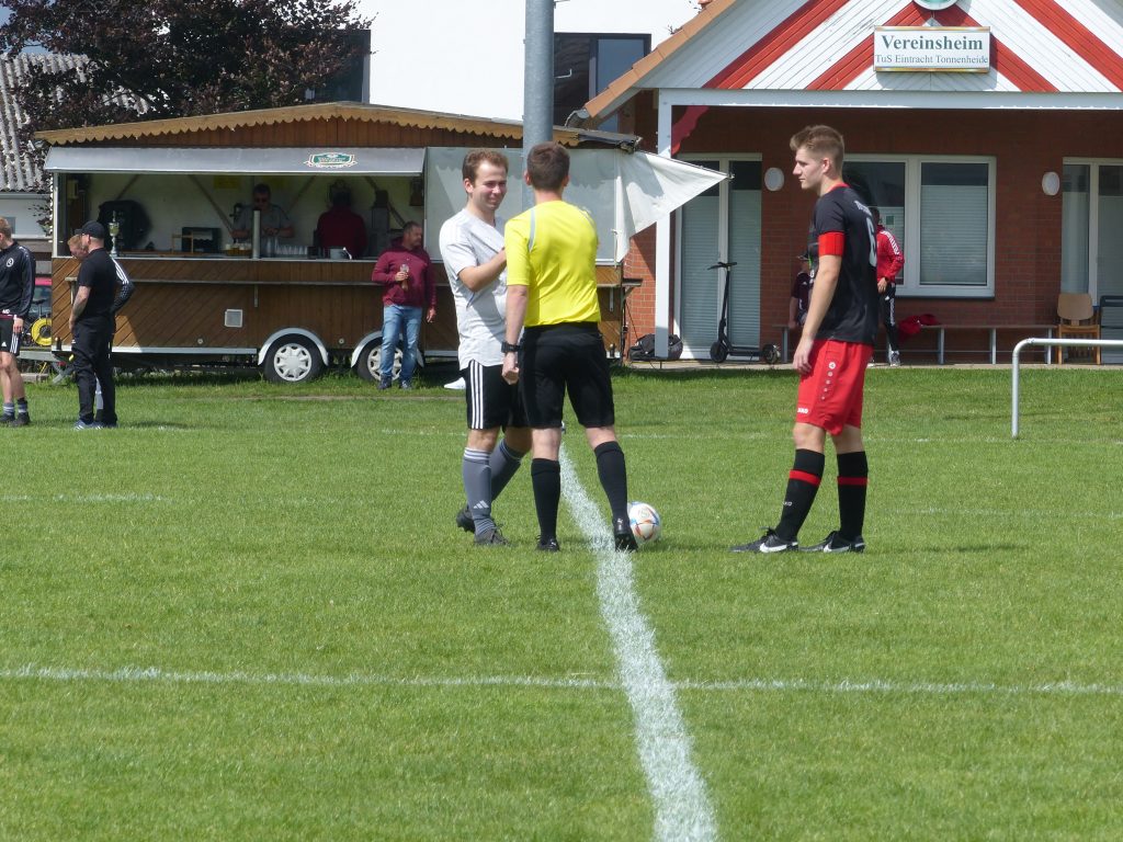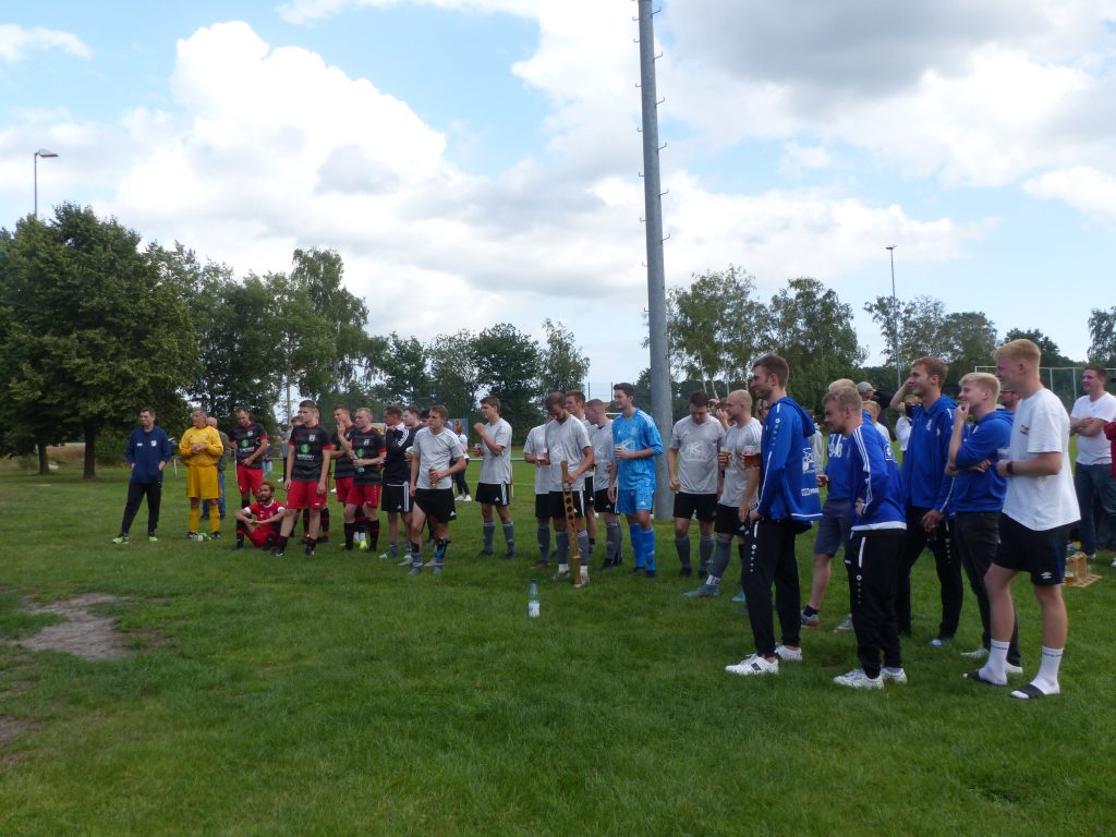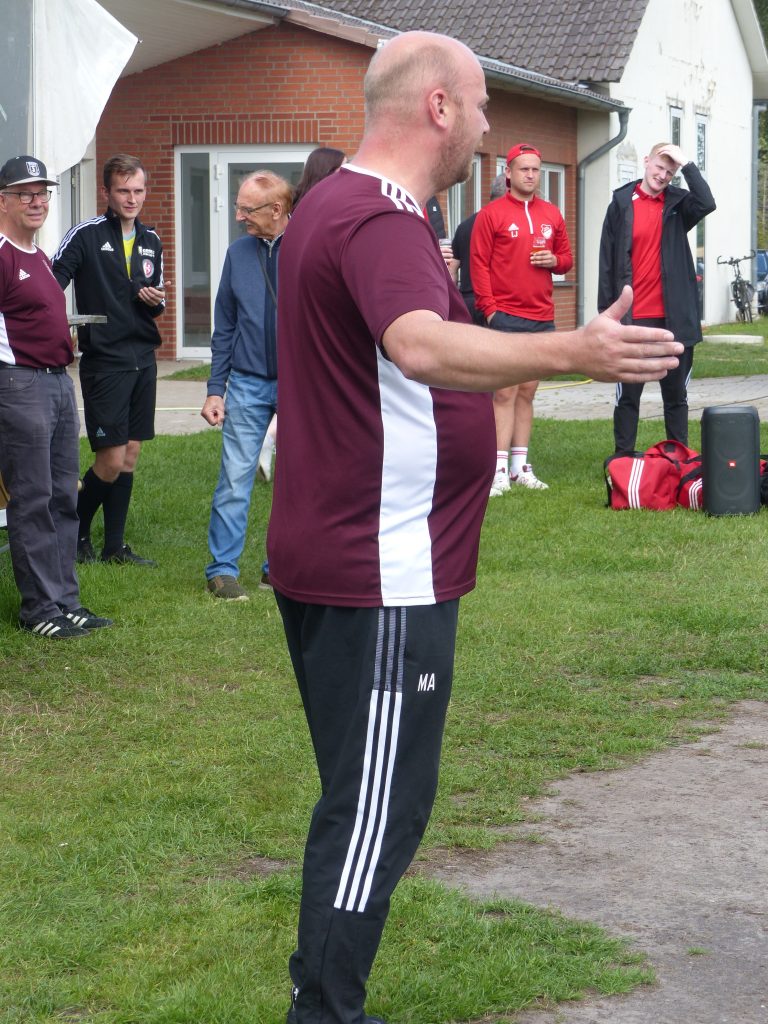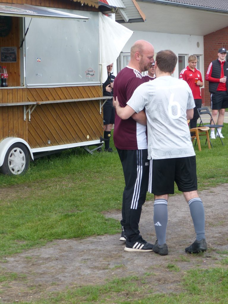 Eine Besonderheit am Rande ist aber noch erwähnenswert: weil Rahdens Spielertrainer und Keeper Daniel Riemer im Urlaub ist, der zweite Torwart Yannick Wegehöft sich am Freitag beim Turnier der Reserven verletzt hatte, suchte TuSpo händeringend einen Torwart für Sonntag. Da stellte sich Oldie Oliver Kahl (nicht zu vewechseln mit Oliver Kahn) spontan zur Verfügung und ging in den Kasten. Oli ist ja auch erst 52 Jahre alt… Und er machte seine Sache gut und hielt sogar im 11er-Schießen den Schuss von Eike Stratmann. Hut ab, Oli!!!