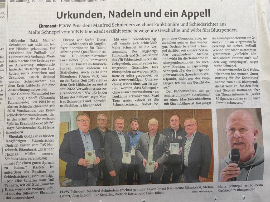 Der FLVW ehrte neben anderen verdienten Sportkameraden auch unseren Jörg Uphoff.
