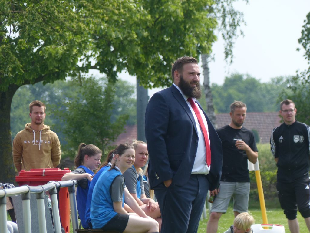 Nach dem letzten Saisonspiel, dass seine „Mädels“ gegen den Tabellenführer und Meister der Kreisliga B, Varl/TuRa mit 1:3 verloren, wurde Jan von seiner Mannschaft und dem jetzigen Trainer Florian Tegeler mit warmen Worten verabschiedet. Zu diesem Anlass hatte sich Fetti in Schale geschmissen und sich mit Anzug und Krawatte ausgestattet.