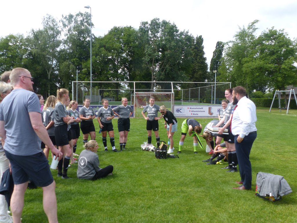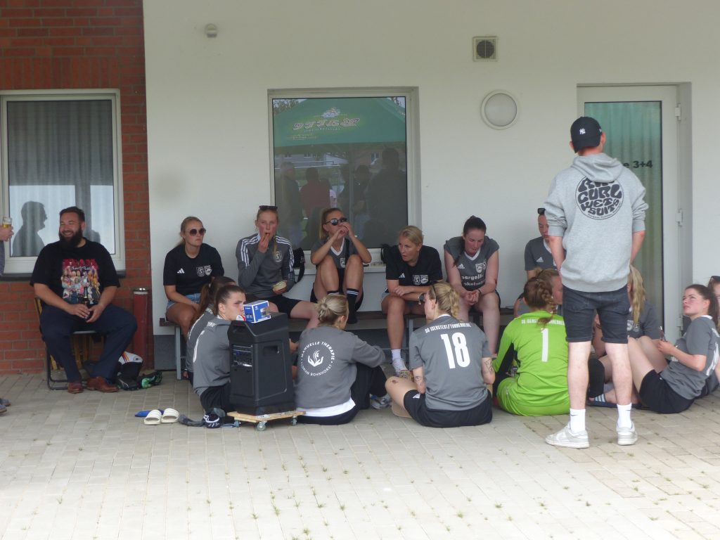 Nach Abschluss der „offiziellen Verabschiedungszeremonie“ rief Jan seine Spielerinnen dazu auf, zum gemütlichen Teil überzugehen. Das tat man auch, saß im Sportpark noch einige Stunden beisammen und sah den Sieg unserer Ersten im Abstiegsduell gegen Pr. Oldendorf.