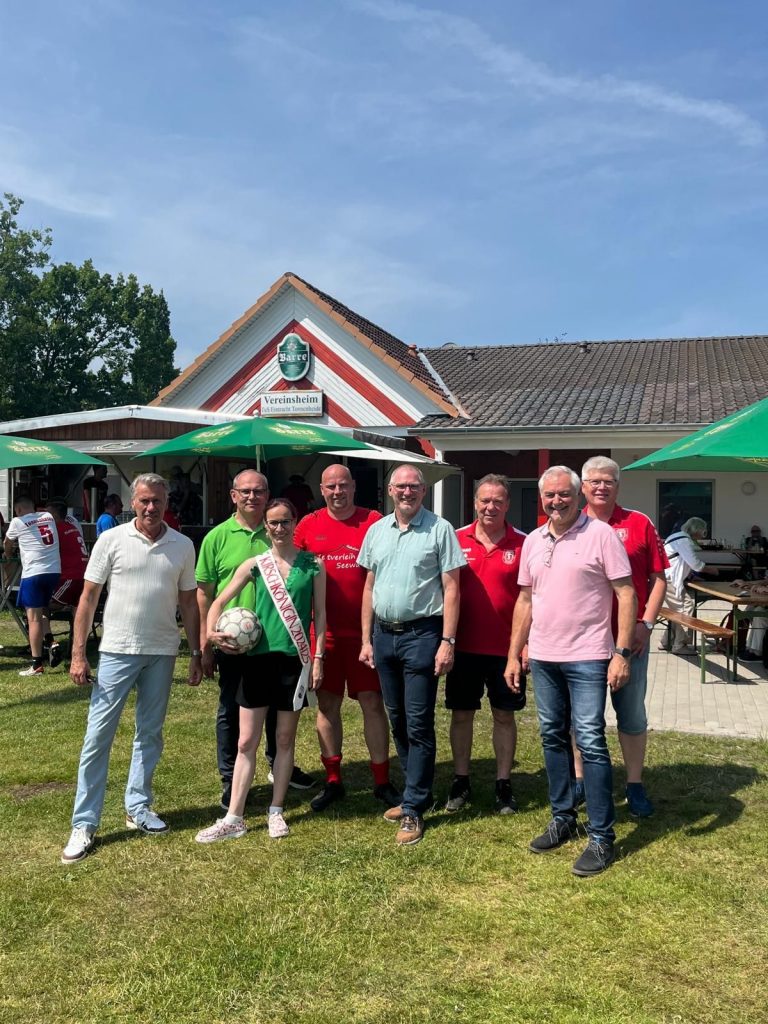 Auf dem Foto von links: BM Dr. Bert Honsel, Ortsvorsteher Kleinendorf, Torsten Klein, Glindower Kirschkönigin Kathleen, Eintracht-Vorsitzender Maik Ahrens, Ortsvorsteher Glindow, Fred Witsche, Eintrachts 2. Vorsitzender Wolfgang Wischmeyer, OV Christian Krüger und unser Kassierer Eckhard Müller.