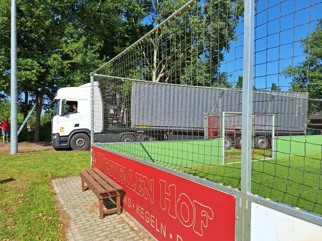 Reinhard Bohnhorst, Mitglied beim Sportplatzteam, drückte es so aus: „Ich bin immer noch begeistert, wie toll wir das mit dem Container hinbekommen haben. Angefangen mit der Idee, dann die Bestellung und dass der Fahrer den Container exakt auf den von uns mit Fundamenten vorbereiteten Platz gestellt hat. Herbert Henkes Schwiegersohn hat dann noch überhängende Äste am Stellplatz entfernt. Der Fahrer von der Spedition war klasse und hatte sehr viel Geduld mit den engen räumlichen Gegebenheiten und hat sein Handwerk verstanden. Eine rundherum gelungene Aktion!“