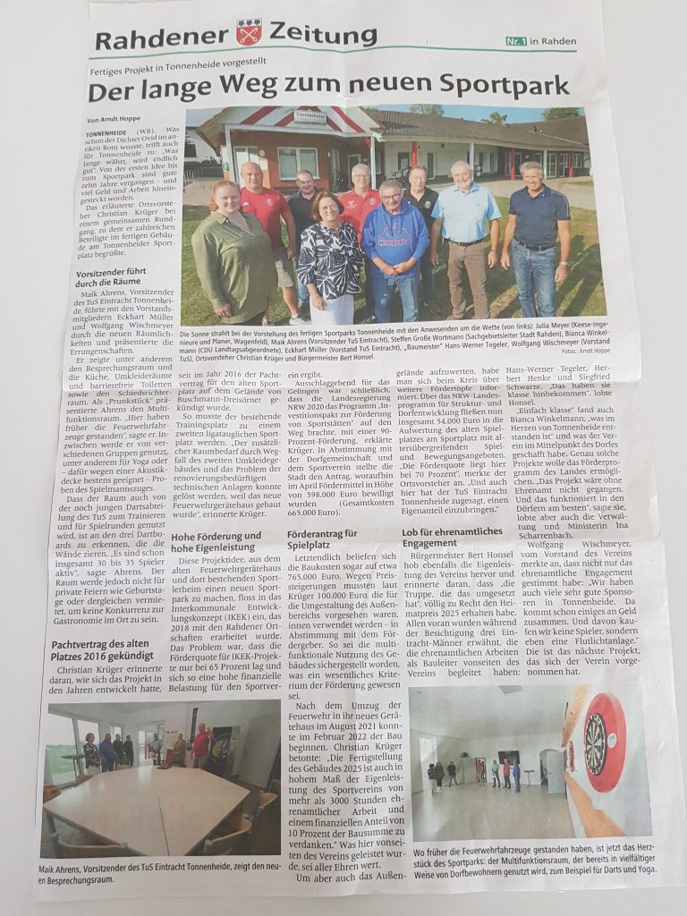 Eintracht-Sportpark: Presseveröffentlichung der Rahdener Zeitung.