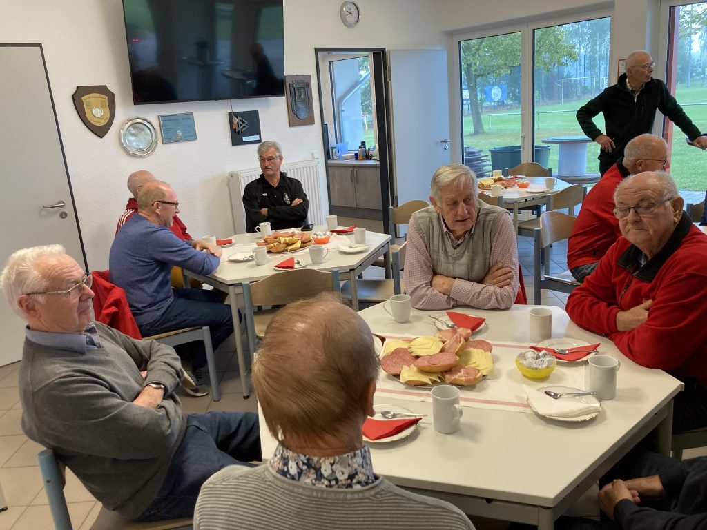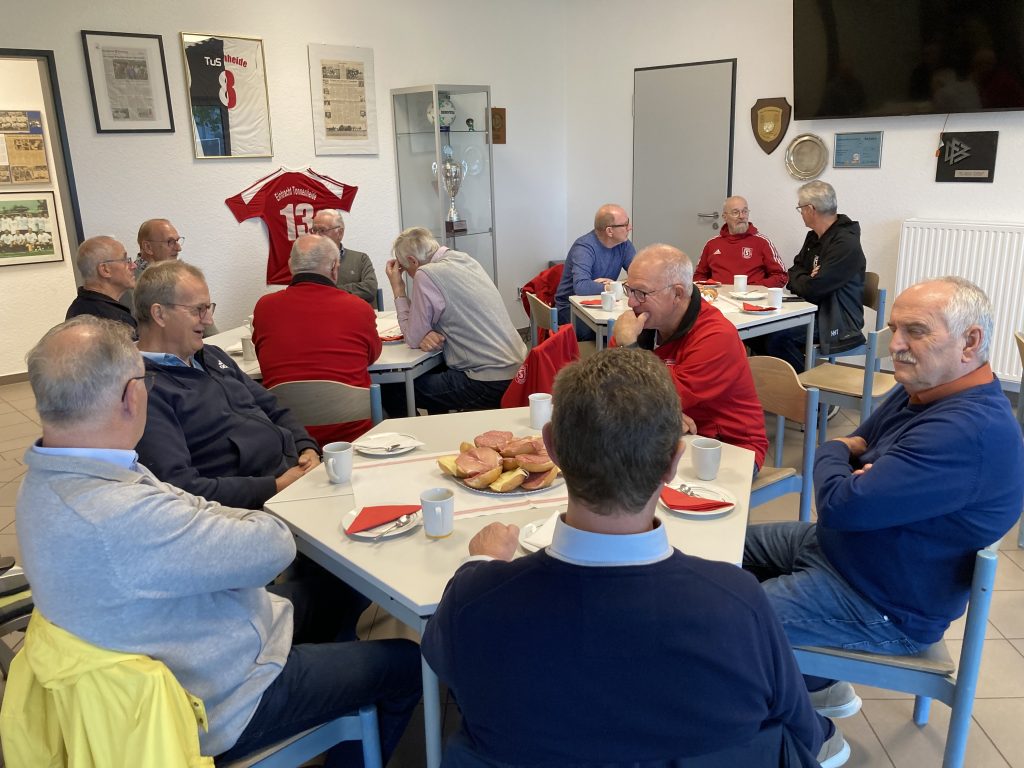 Das Treffen der Sportkameraden, die in den 60er/70er Jahren das Gerüst der I. Mannschaft der Eintracht bildeten, fand diese Woche statt. Wie im letzten Jahr auch, trafen sich (diesmal) 18 ehemalige Spieler im Vereinsheim am Eintracht-Sportpark. Insgesamt hätten es 20 sein können, die Gerhard Hartmann zu der Mannschaftssitzung eingeladen hatte. Einer musste im Vorfeld wegen eines anderen Termines absagen und ein zweiter fehlte.